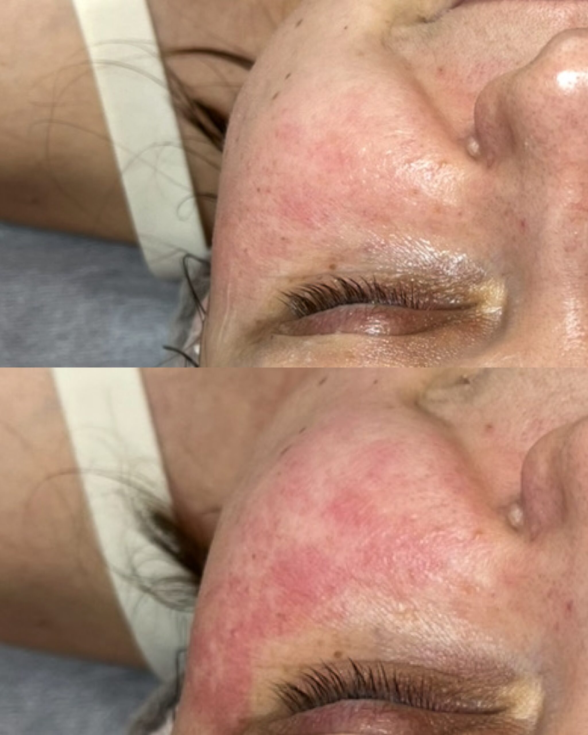 Bezpośrednio po zabiegu skóra może być lekko zaczerwieniona lub odczuwalnie cieplejsza, jednak objawy te zazwyczaj ustępują w ciągu kilku godzin. W większości przypadków możliwy jest szybki powrót do codziennych aktywności, a makijaż można nałożyć tego samego dnia, jeśli skóra nie jest podrażniona.