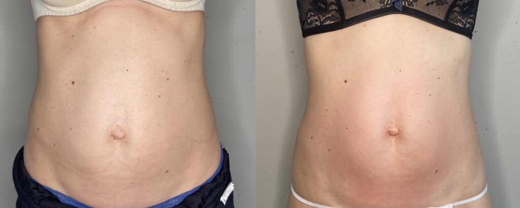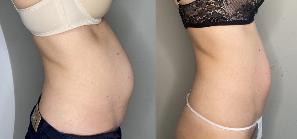 - Skóra brzucha odzyskała sprężystość i witalność, a rozstęp mięśnia prostego zmniejszył się z dwóch palców do jednego.