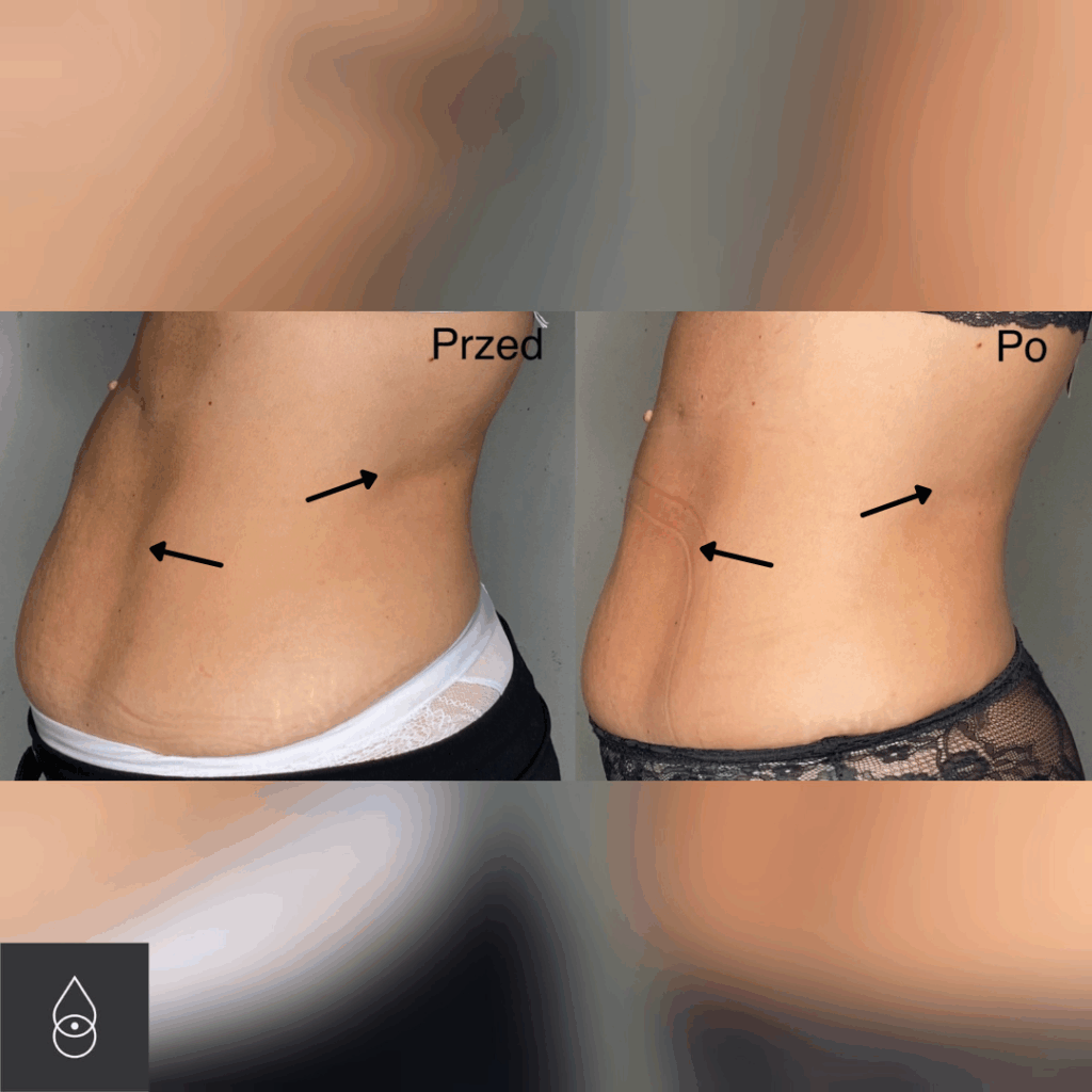 Efekty: po ok. 3 tygodniach widoczne wygładzenie i uniesienie skóry, redukcja tkanki tłuszczowej