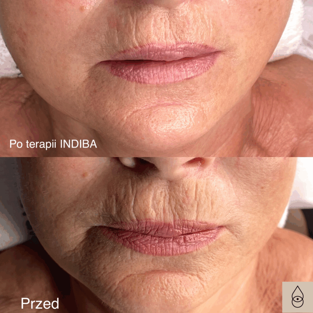 Efekty: spłycenie zmarszczek palacza, poprawa elastyczności i jędrności skóry w okolicy ust