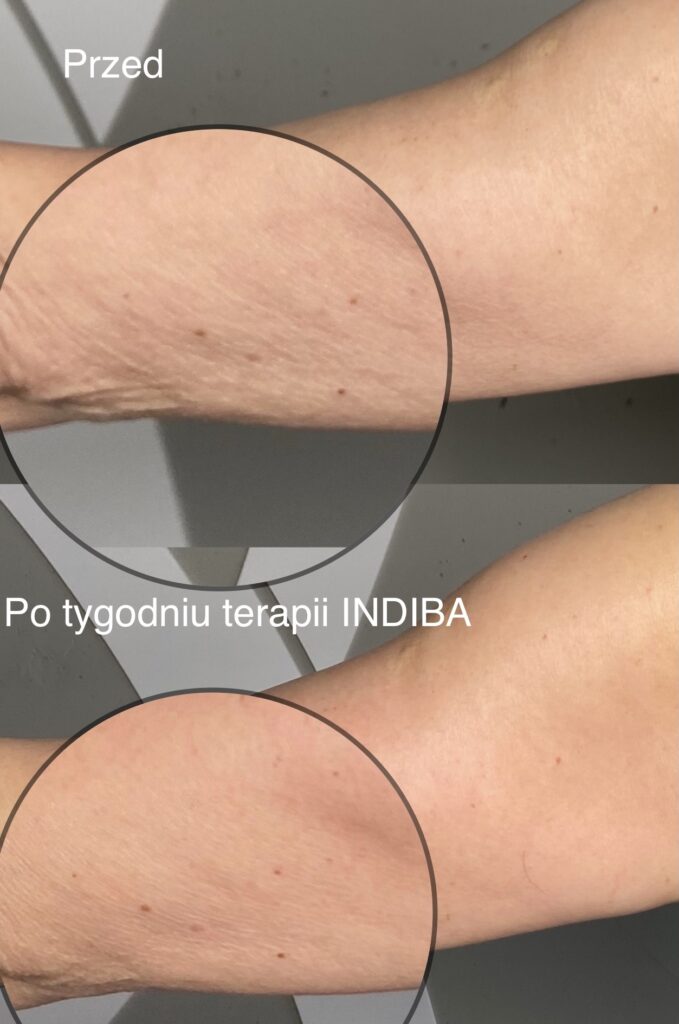 Na zdjęciach efekt widoczny jest natychmiast, ale to dopiero początek – działanie INDIBA kontynuuje się przez wiele tygodni po zakończeniu serii. Dzięki temu skóra Pani Uli będzie z miesiąca na miesiąc stawała się coraz bardziej napięta i jędrna.